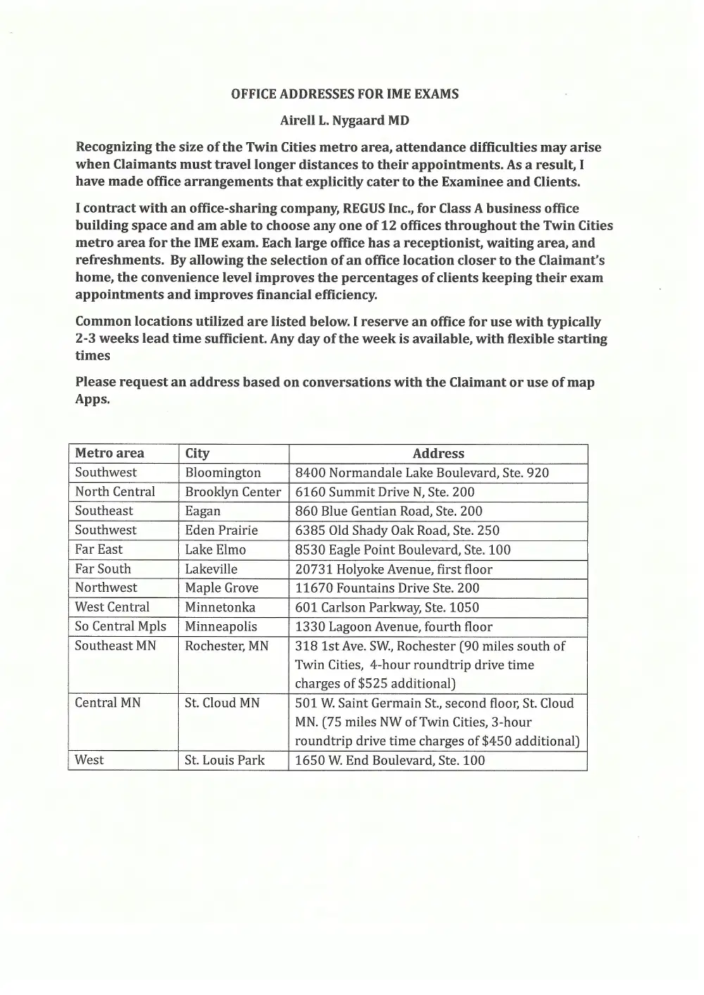 Dr. Nygaard is available to travel throughout Minnesota to testify regarding Orthopedic medical-legal issues.